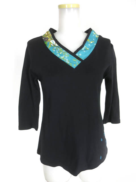 ■袖プリント長袖チュニックカットソー 黒 袖部分に薔薇プリントが施されたチュニックカットソーです。ストレッチがかなり効いております。 |