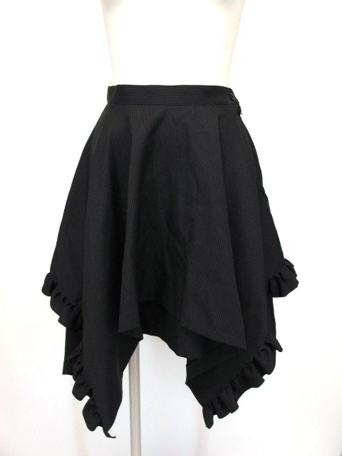 ■ストライプスカート オフ黒 ストライプ柄生地を使ったフリルスカートです。 |