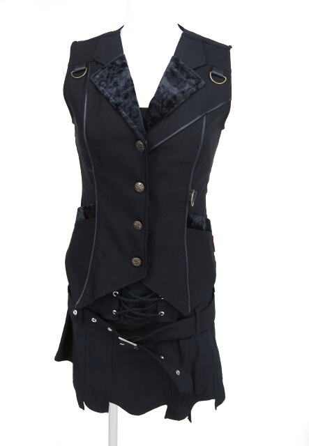 ■ゴシックシャーリングワンピース 黒×白×シルバー ゴシックなアイアンゲート柄デザインのシャーリングワンピースです。 |