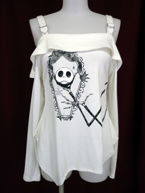 ■オフショルダーロングTシャツ 白 ジャックのプリントの入ったオフショルダータイプのカットソーです。 |