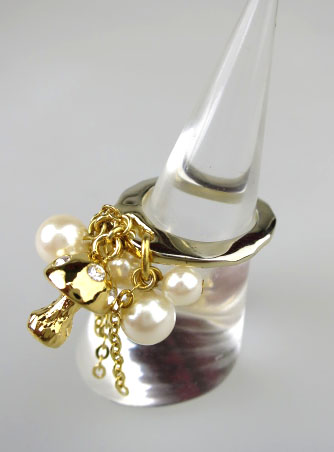 ■きのこリング ゴールド きのこやパールチャームの付いたキューポット初期物のリングです。 |