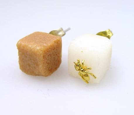 ■シュガーキューブピアス 角砂糖に蟻さんチャームのついたキューブ型ピアスです。 |
