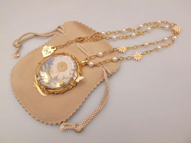 ■アリス/フラワーガーデンネックレス Q-pot.×Disneyシリーズのアリスコレクション。森の中にたたずむ、アリスと花びらを閉じ込めたクリアなネックレス。アリスの世界にのみ込まれてしまいそうな逸品。※天然の押し花を使用しておりますので、1つ1つ異なります。 |