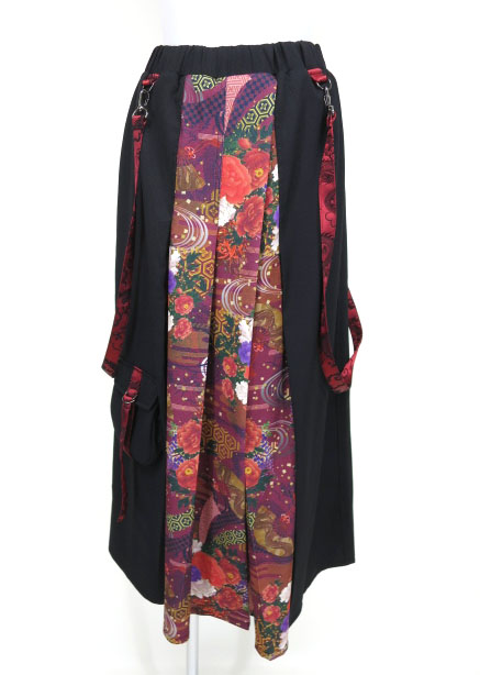■オーバースカート付きショートパンツ 黒×赤 内側にショートパンツの付いたロングスカートです。 |