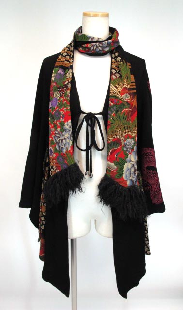 ■ストール衿振袖カーディガン 黒 ストール衿になった振袖カーディガンです。伸縮性のある素材を使っています。 |