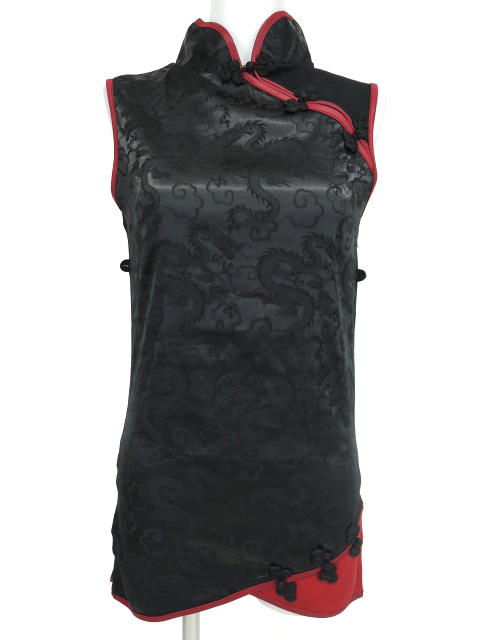 ■チャイナノースリーブカットソー 黒×赤 バックに刺繍が入っているチャイナノースリーブカットソーです。 |