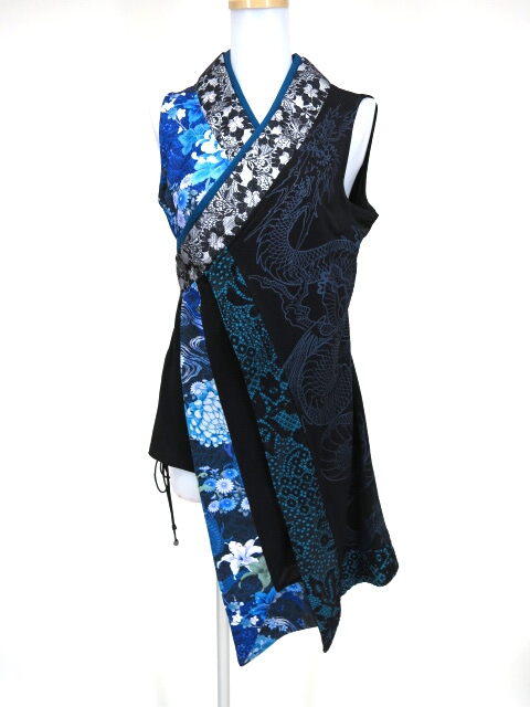 ■ノースリーブインナーチュニック 黒×青 ノースリーブでインナーにもおすすめのチュニックワンピースです。 |