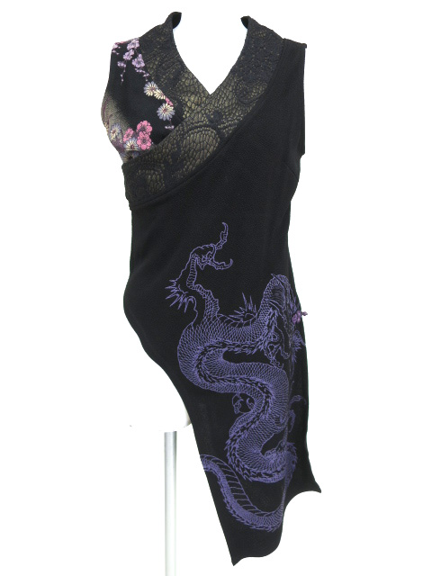 ■ノースリーブインナーチュニック 黒×紫 ノースリーブでインナーにもおすすめのアシンメトリーチュニックワンピースです。 |