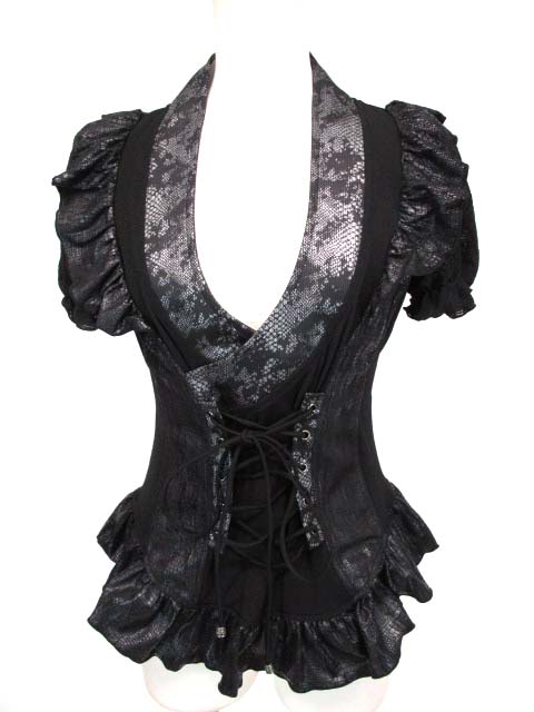 ■パフスリーブカットソー 黒 袖と背中はレース地の切り替えになっています。 |