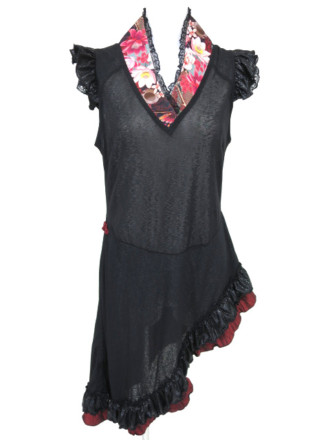 ■フリルインナーチュニック 黒×赤 一枚あると便利なインナーチュニックワンピースです。生地は薄手で透けます。 |