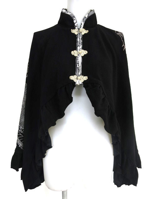 ■ラメ龍プリントチャイナケープ 黒×シルバー シルバーラメの龍プリントの入ったジップアップケープです。 |