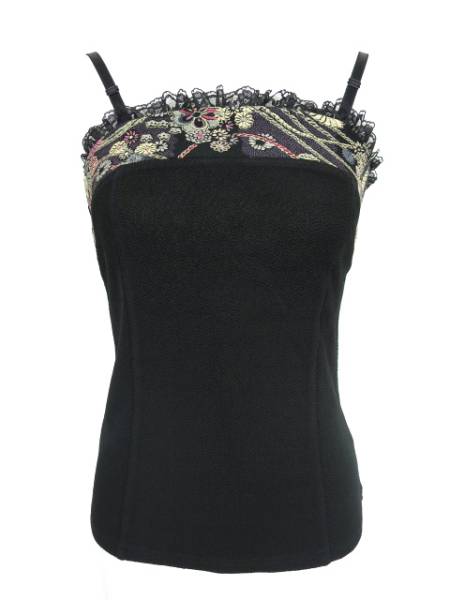 ■レース付き和柄切替キャミソール 黒×紫 和柄の切り替えの入ったデザインのキャミソールです。 |