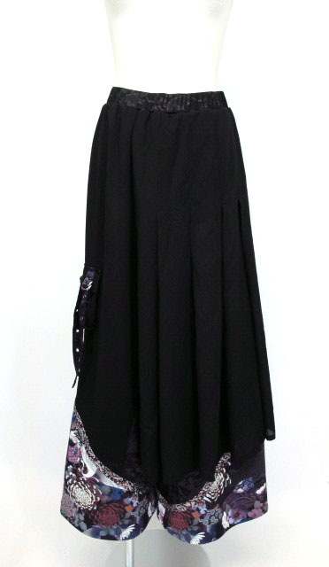 ■和柄切り替え飾り布付きワイドパンツ 黒×紫 和柄切替の飾り布付きワイドパンツです。 |