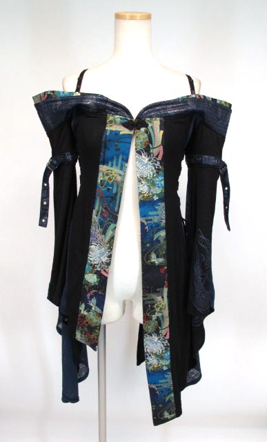和柄切替デザインのロング丈振袖羽織です。サイド編上げスタイルになっており、全体に伸縮性の高い素材を使っています。