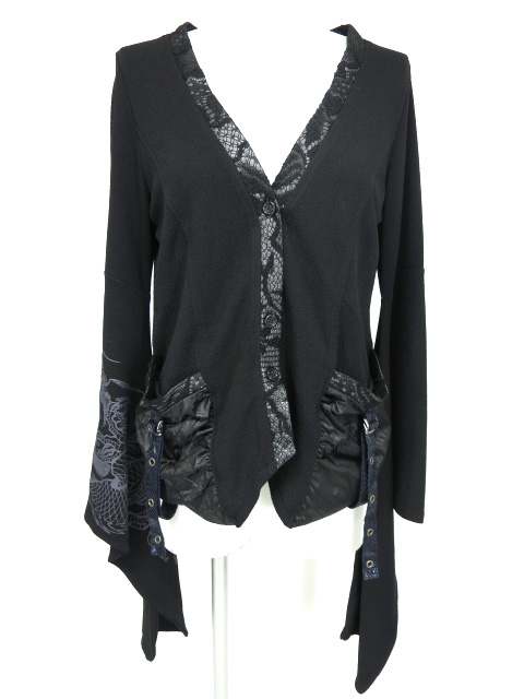 ■振袖カーディガン 黒 龍プリントの入った振袖デザインのカーディガンです。 |