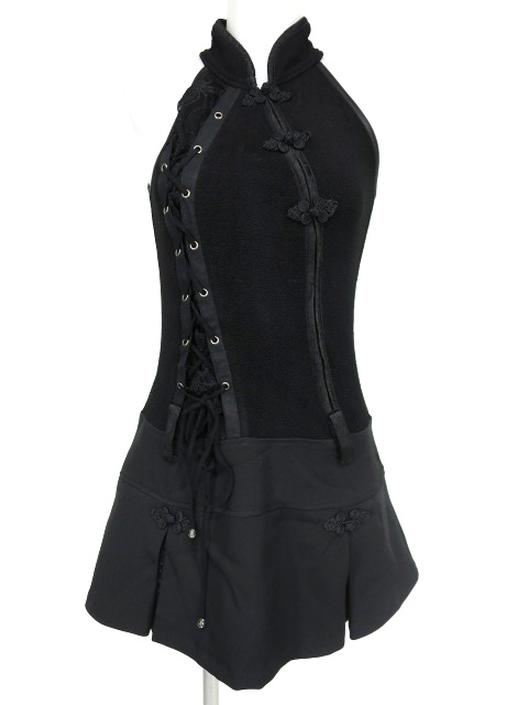 ■斜めジップ付きノースリーブワンピース 黒 チャイナボタン付きのワンピースです。ストレッチがかなりある商品です。 |
