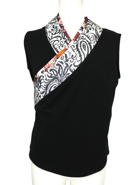 ■着物衿ノースリーブカットソー 黒 着物のような和風な襟のついたノースリーブカットソーです。 |