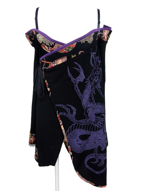 ■着物襟オフショル振袖カーディガン 黒×紫 |