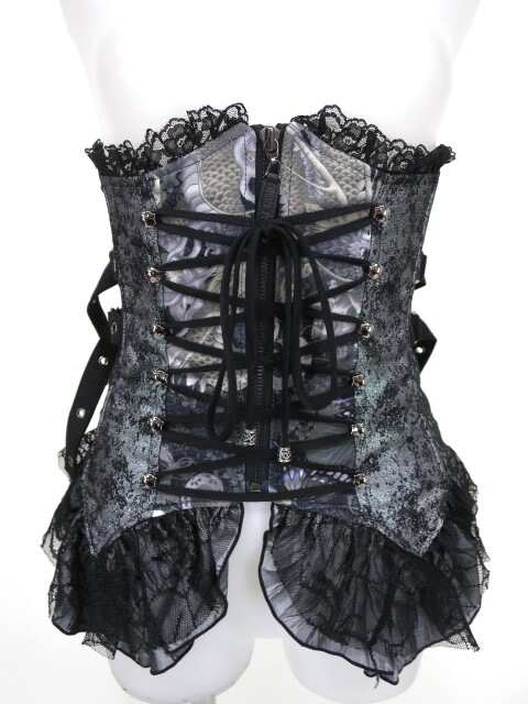 ■編み上げコルセット 黒×シルバー 編み上げひもの付いた異素材使いのボーン入りコルセットです。 |