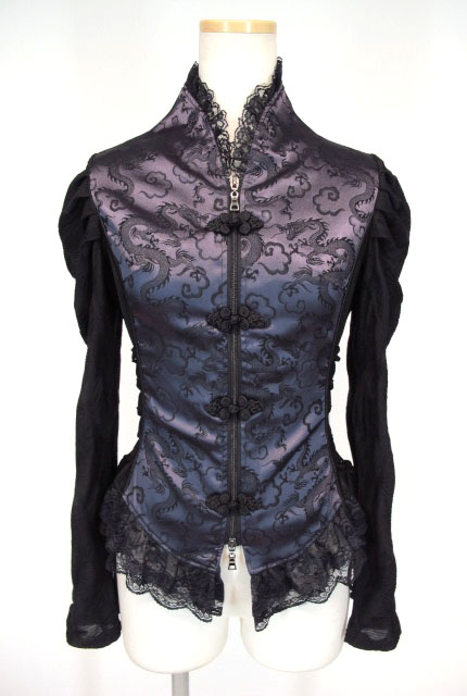 ■編み上げ付きジップアップブルゾン 紫×黒 サイド編み上げ付きのジップアップブルゾンです。切替生地の素敵なデザイン。 |