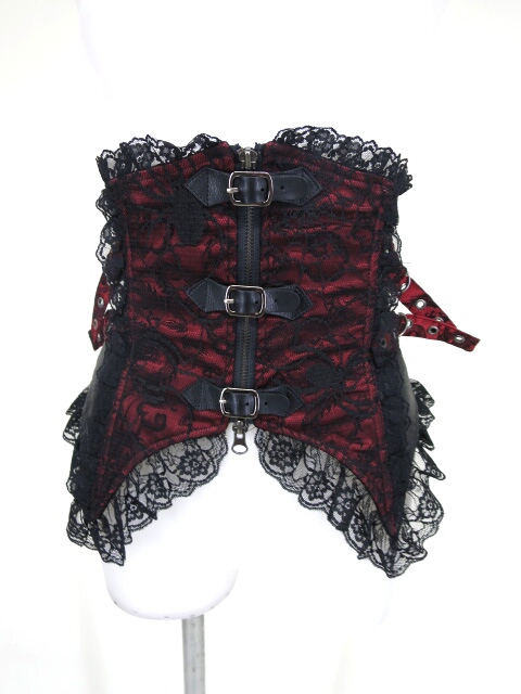 ■蜘蛛の巣レース重ねコルセット 黒×赤 蜘蛛の巣レースを重ねたボーン入りの合皮のコルセットです。着脱は正面ジッパーです。 |