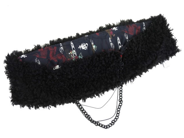 ■龍プリントボアスヌード 黒 取り外しできる飾りチェーンの付いたボア素材のスヌードです。マフラーやベストのようにもお使いいただけます。 |
