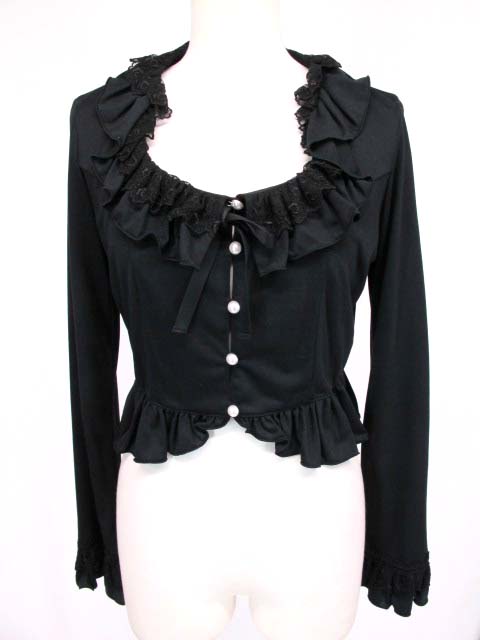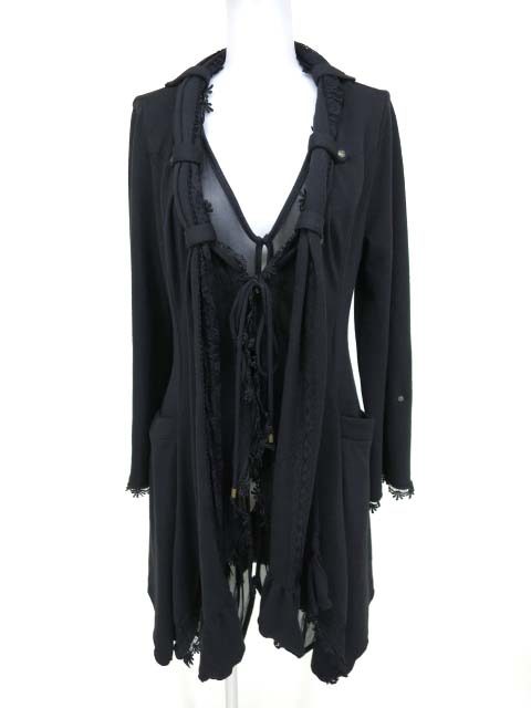 ■ストール通しロングカーディガン 黒 首にストールの通されたデザインのロングカーディガンです。前身頃は内側にメッシュが付いており、正面はそれぞれフックで留めるデザインになっております。袖は内側についたベルトでまくれます。 |