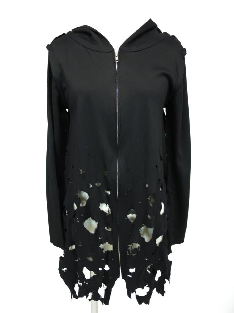 ■ダメージジップパーカー 黒 激しいダメージ加工の入ったパーカーです。裏返しのように縫い目が外側に出たデザインです。 |