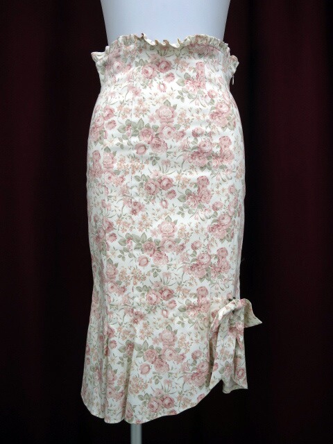 ■エレガントマーメイドスカート アイボリー まるで人魚の尾のように、優雅に広がる裾にかけてのエレガントな シルエットが魅力の スカートです。歩く度、裾がひらひらと揺らめき、気品ある大人の女性らしさの中にも、どこか可愛らしさがあります。背面は編み上げ、ハイウェストにはフリルを施したデザインですので、ブラウスを中に入れてお召し頂いても素敵です。また、ピン付リボンは付け外し可能ですので、様々なシーンでお召し頂けます。 |