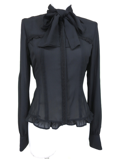 スタンドカラーのタイ付きレーシーブラウスです。(タイの取り外しはできません) ジョーゼット生地です。