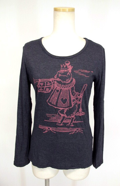 ■アリス風キャットプリント長袖カットソー 紺 ネコアリス柄プリントの長袖カットソーです。(株)インコントロタグの日本製。 |